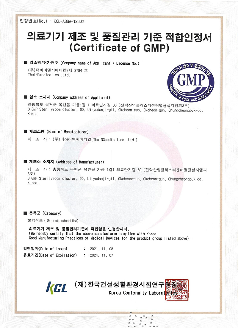 | 11 | 의료기기제조및품질관리기준적합인증서(KCL) |